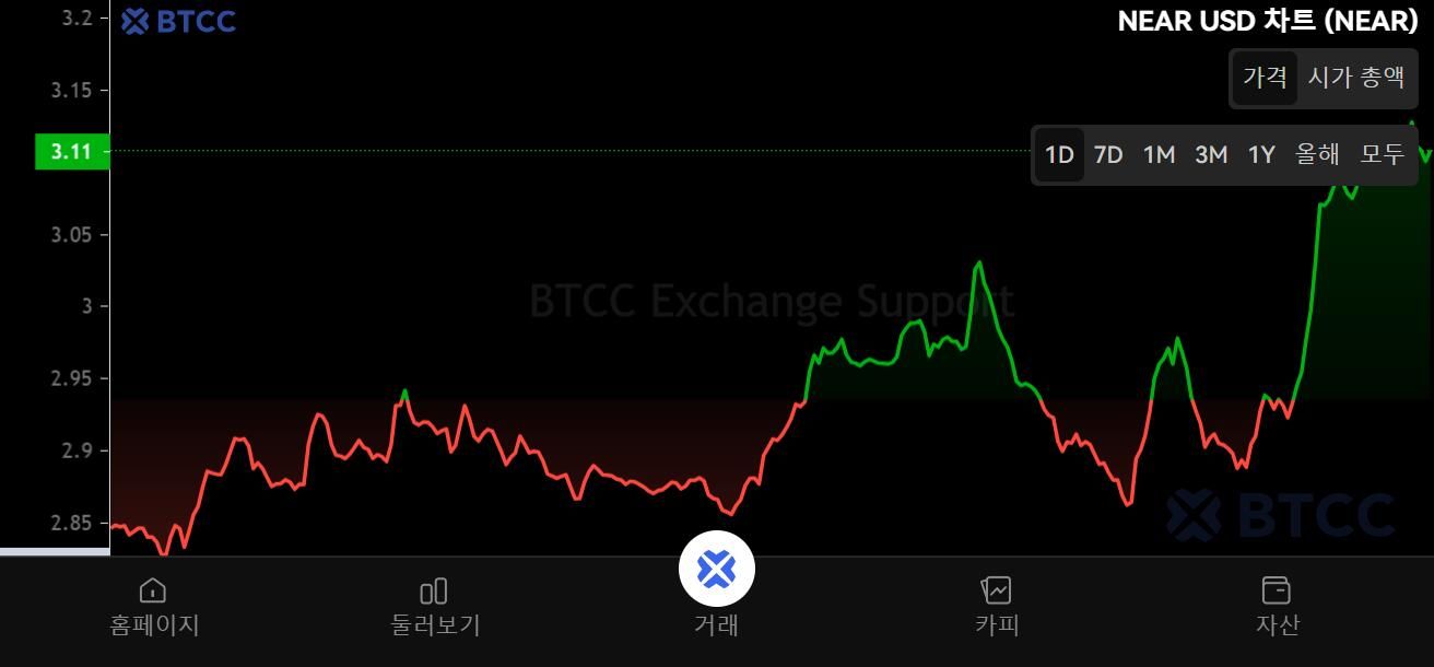 据BTCC交易所市场显示,NEAR目前交易价为2.8827美元,较前24小时上涨0.96%,目前市值36亿美元,币种排名34位。