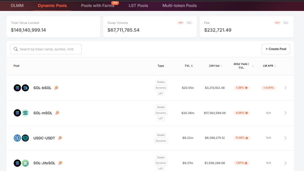 除了 LP 提供者,Meteora 还为希望创建自己代币池的项目提供无需许可的动态池,这样避免了对第三方的依赖,能享有更大的灵活性、控制权和透明度。为了提供更好的奖励,Meteora 实施了三种类型的池: