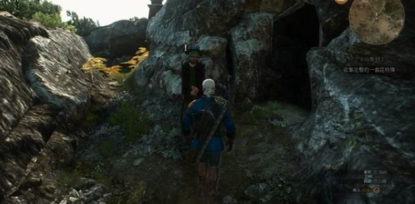 玩家在接受任务之前,需要和洞穴门口的一名德鲁伊进行对话,德鲁伊会告诉我们的玩家,他的好朋友依吉突然无法说话了,只有让他的情绪刺激起来,才能帮助可怜的依吉找回语音组织的能力,于是便请求我们杰洛特帮助他。