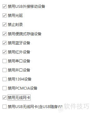 可借助外设管理功能来调控电脑上的USB端口,例如可以禁用外接的移动硬盘等设备,并限制蓝牙、红外线及无线网络卡的使用。 除了鼠标和键盘外,其他便携式存储设备都可纳入管控范围。通过精细化管理,能够有效约束员工对USB接口的不规范使用,提升设备使用的安全性与规范性,防止数据泄露风险。