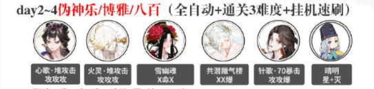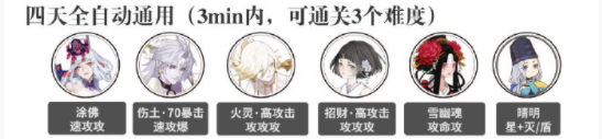 伪月落二阶段活动需要通关四个副本,每个副本都有从低到高三个难度分级,想要通关是需要一定练度的,但是在通关之后就可以去刷普通副本拿完三十次奖励,加上一阶段和二阶段的副本加成,借好友的式神总体来说也不难。有些小伙伴不清楚二阶段用什么阵容打,接下来就让我们一起来了解一下全自动通用阵容推荐。