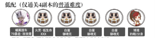低配阵容推荐:麓铭大岳丸+缘结神+蝎女+帝释天+座敷童子