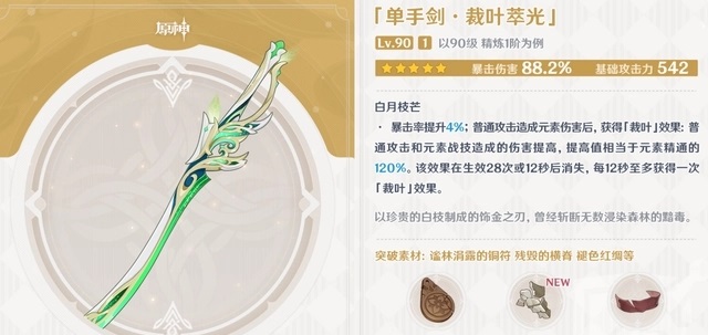 原神裁叶萃光属性怎么样 原神裁叶萃光属性一览
