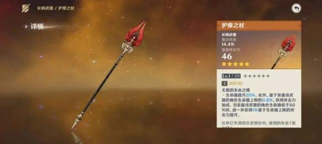 护摩之杖增加的是爆伤属性,魈突破自带暴击,所以双暴也是比较好堆的。护摩之杖可以在血量降低的时候根据生命上限进行攻击加成,非常契合魈的开大烧血特性,所以魈带护摩之杖也是可以吃满加成效果的。