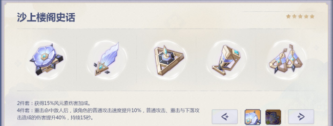 这个套装可以获得百分之三十的风伤加成,在散件套属性比较好的时候可以使用。