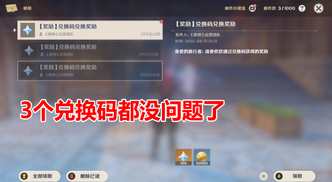 总共就这三个兑换码,错过直播的小伙伴赶紧领起来。兑换码在2023年1月7日中午12点就会失效,记得看到兑换码就赶紧去游戏中领取以免错过丰厚的奖励哦。