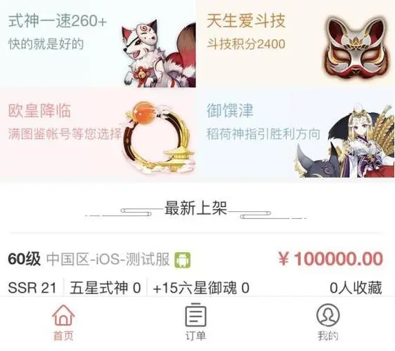 藏宝阁中的分区分为ios和安卓两个角色分区,两个平台不互通,需要用不同的设备登录。之后就能进去不同的平台看到正在售卖的角色数据,点开页面可以查看详细的数据。包括六星式神和御魂数量,有看中的就可以点击详情页中的购买,还想再逛逛就点击收藏。