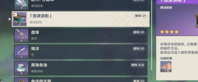 第三步,找到「澄波游影」之后,使用10条花鱂就可以兑换了