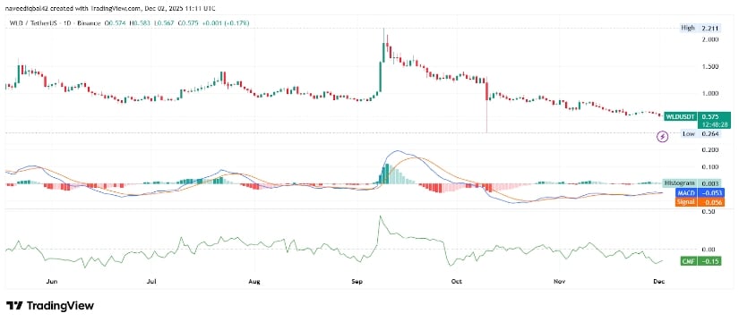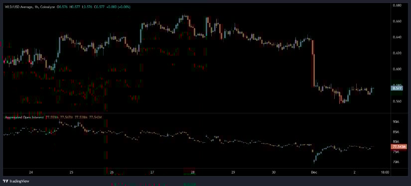 Worldcoin价格动态:随着未平仓合约减少和势头减弱,WLD跌向0.57美元