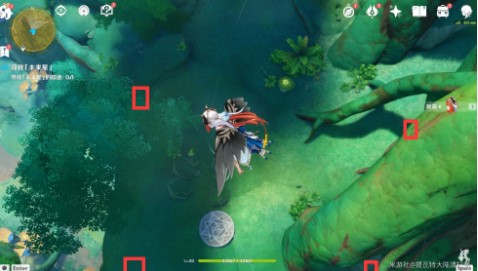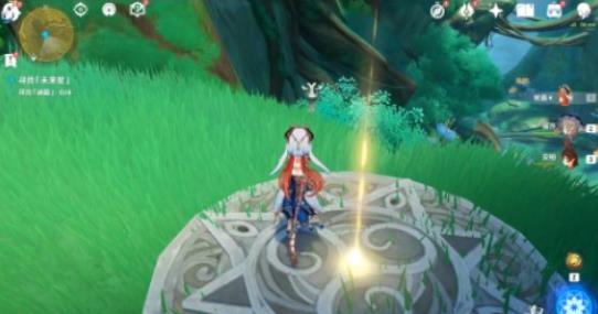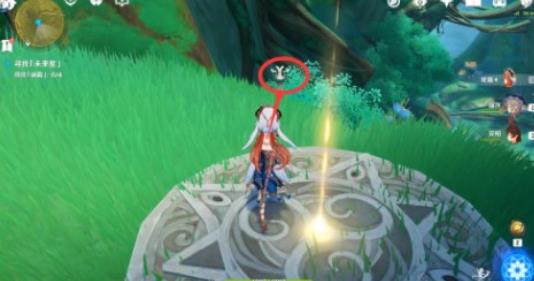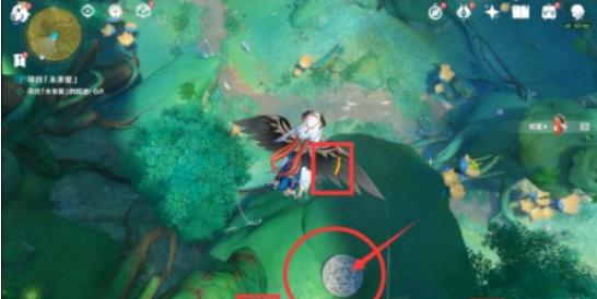 2.控制任务先来到水天丛林的七天神像处,找准方位,控制角色前往东南方向飞去,大概一定的距离后能察觉到附近有一个很明显的机关