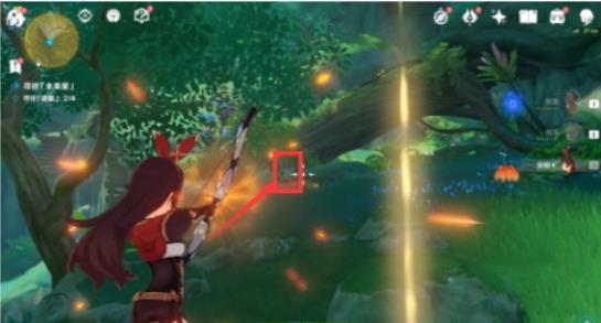 3.然后让角色跑到附近触发任务的同时,查看到任务的谜题要求是点燃四次火炬树,以下附上火炬树的位置