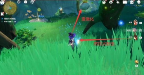 5.而另外两个火炬树桩需要你先操作雷属性角色来激发三乘种子后,才能让火炬树桩显露出来,此时再操作火元素角色点燃好就可以了