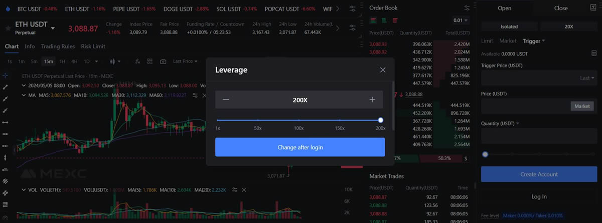 MEXC 交易所提供超过 1,200 种期货合约。这些合约的杠杆高达 500 倍,这意味着您可以控制远超初始投资的仓位。