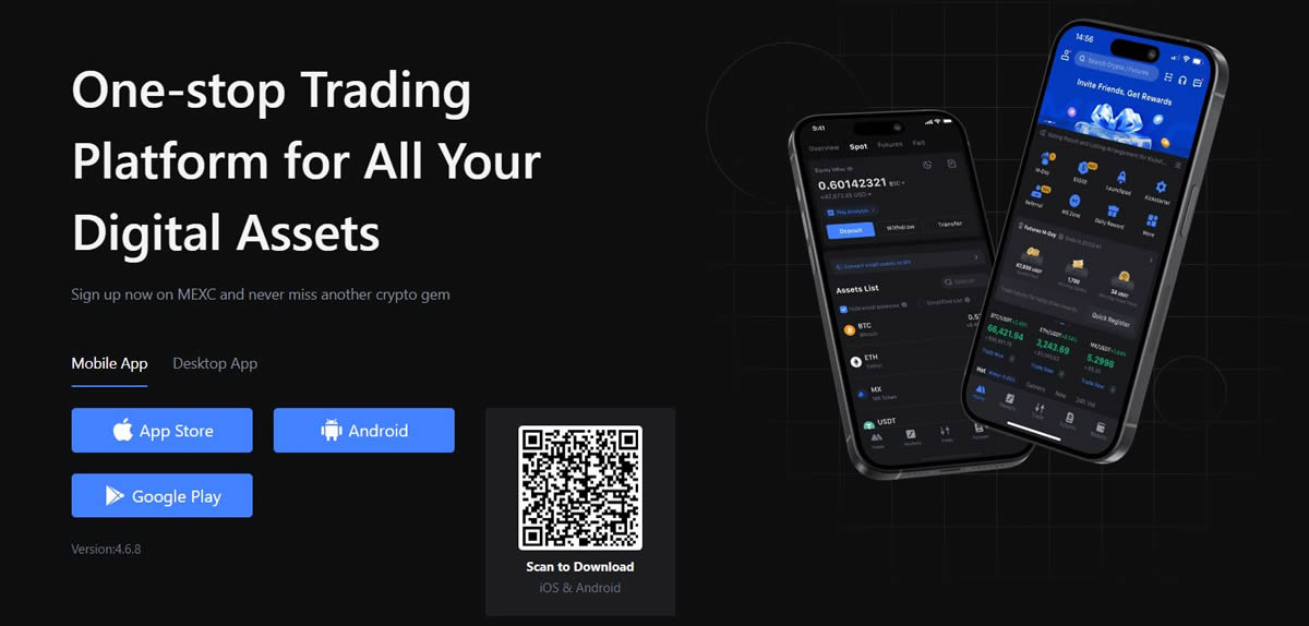 MEXC 应用程序可让您通过智能手机便捷地买卖和交易加密货币。它适用于Android和iOS设备,在 Google Play 和 App Store 上的平均评分均为 4.7/5。