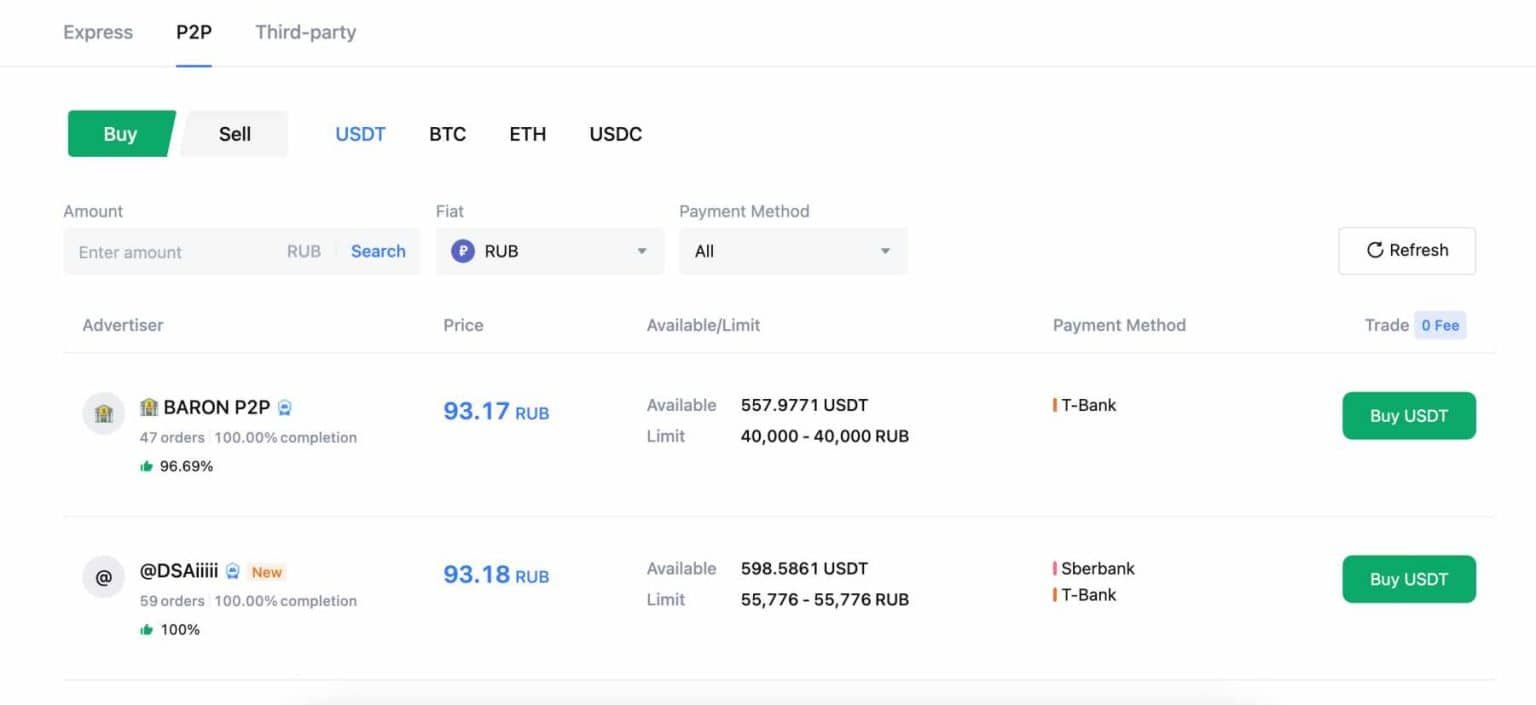 在 P2P 交易中,您可以直接从卖家处购买加密货币。价格由卖家设置,可能高于或低于现货价格。