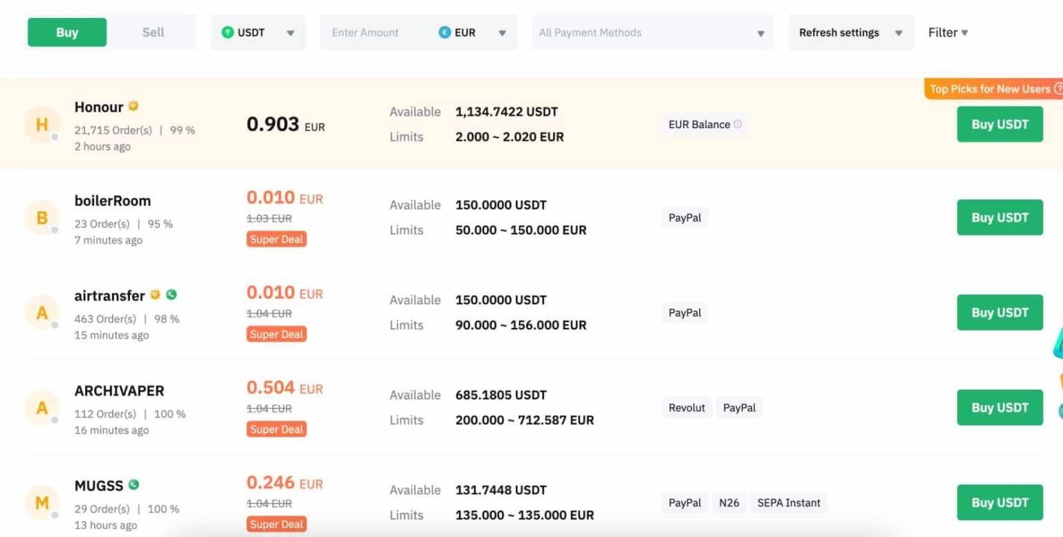 不幸的是,它不支持 PayPal 付款。并非所有 P2P 卖家都经过 OKX 验证Binance 一因其定制工具和高流动性而成为一个很好的选择