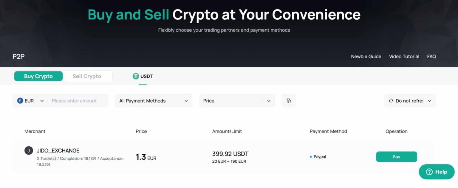 大多数卖家设置的 P2P 最低限额约为 500 美元。一些卖家提供的价格远高于现货价格CoinEx 一通过 P2P 购买 USDT,访问 1,600 多个加密货币交易市场