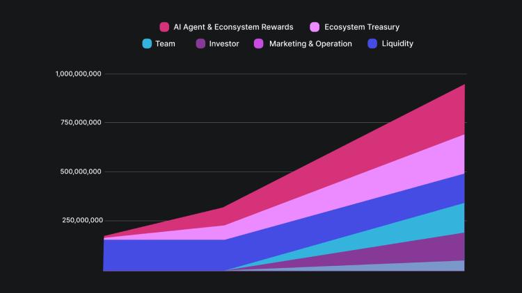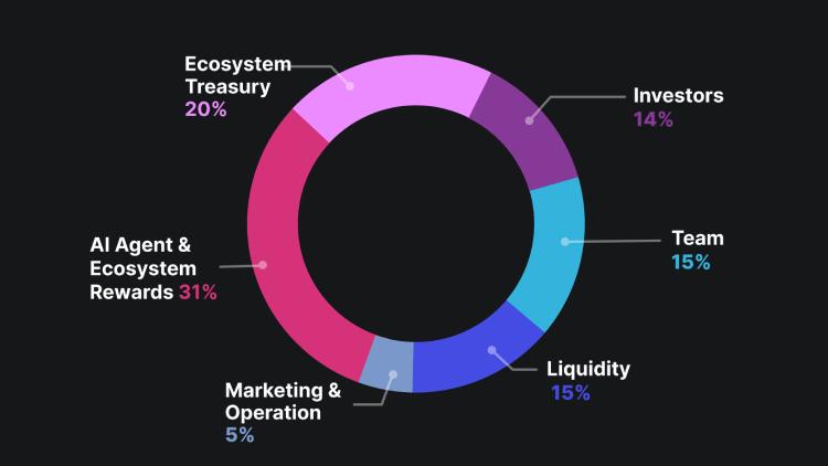 AI 代理和生态系统奖励获得 31%,其中 5% 在 TGE 解锁,并且 36 个月归属。
