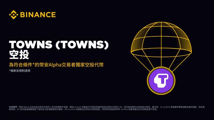 币安Alpha 将在8 月5 日成为首个上线Towns(TOWNS)的平台!