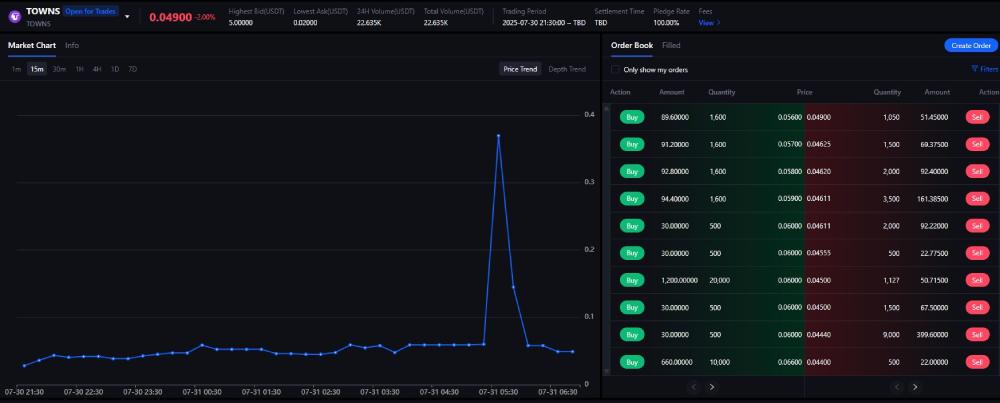 TOWNS 代币在 Mexc 平台盘前交易价格情况