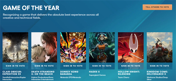 以上就是TGA2025玩家之声投票入口分享全部内容,希望对你有帮助。想查找更多游戏攻略,欢迎持续关注查看。