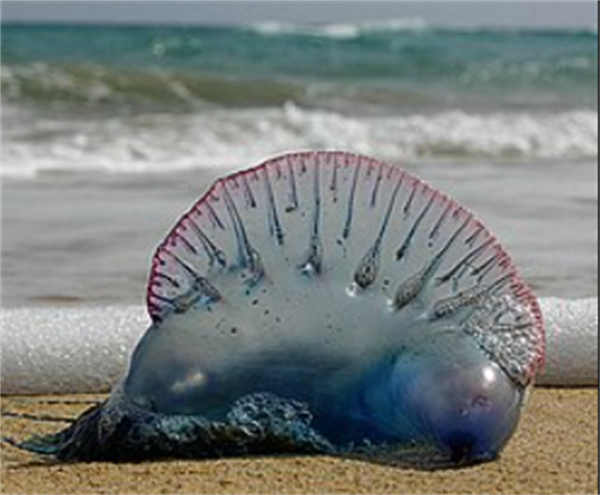僧帽水母的触手上布满了大量刺细胞,这些刺细胞内含有毒液囊,一旦接触到其他生物就会迅速释放毒针和毒素,用来麻痹猎物或进行防御。因此它看似柔软漂浮,但触手却具有极强毒性,需避免直接碰触。