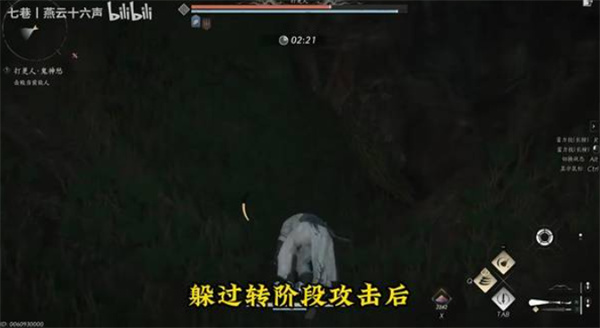 此时立即爬到后方树根的最高点,避开转阶段的范围攻击。