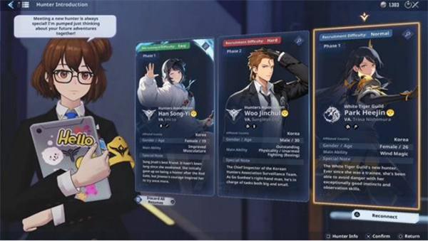 完成教程并解锁猎人公会后,可以直接获得三名免费猎人: