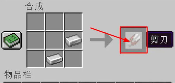 1、打开我的世界游戏,事先准备好两块铁锭,在工作台上合成一把剪刀。
