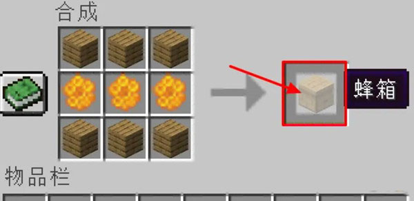 3、把剪下来的蜜脾放在工作台里,其他格子全部放上木板,这样就可以合成蜂箱了。