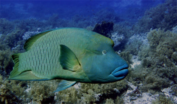 “苏眉鱼”是波纹唇鱼的俗称,其显著特征是额头隆起、嘴唇厚实,远远看去像是“眉骨高耸”,因此得名“苏眉”。它们体型巨大、颜色鲜艳,是典型的珊瑚礁大型鱼类,在生态系统中具有重要作用。同时,因为数量稀少、繁殖慢,被列为珍稀保护物种,是海洋中备受关注的明星鱼类。