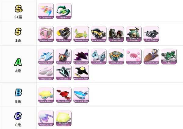 A等级:翼星、翘轮自行车、暗影星、战车、坦克星、灵巧星、火箭星、变形星、跳跃星、喷气星、吸血鬼星
