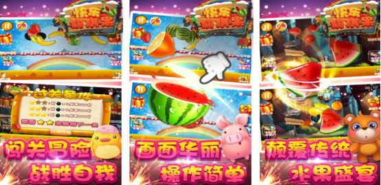 以多样可口的水果为核心元素打造的游戏,总能带来轻松愉悦的体验。早在多年前风靡一时的切西瓜小游戏,就凭借简单有趣的玩法赢得了广大玩家的喜爱,覆盖各个年龄层。即使如今手游类型不断创新,这类休闲切水果游戏依然拥有大批忠实粉丝。游戏中,各种鲜美的水果如西瓜、草莓等会随机弹跳出屏幕,玩家只需用手指滑动即可完成切割操作,达成指定目标后便可进入下一关卡。