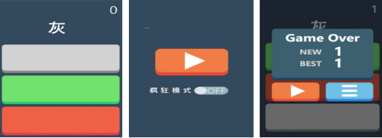 这款手游采用了简约设计,适用于多种场景。关卡启动时系统会随机生成题目,比如显示“灰”字,但需要从下方三个颜色选项中准确选出灰色方块并点击确认。一开始难度较低,随着游戏进展节奏逐渐加快,挑战变得更加困难。不仅如此,游戏中还设有疯狂模式,进一步考验玩家的专注力与反应速度。
