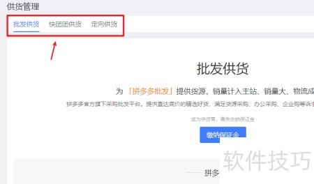- 进入供货管理页面,选择三种方式中的批发供货进行操作。