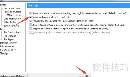 - 勾选显示启动提示后,点击确定即可完成设置。