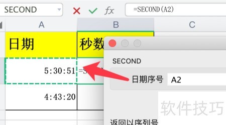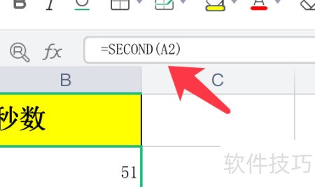 - 直接在单元格输入公式=SECOND(A2),按回车键即可。