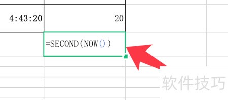 - 输入公式 =second(now()),可获取当前时间的秒数部分。