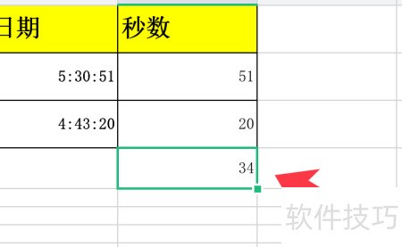 WPS中用SECOND函数提取秒数