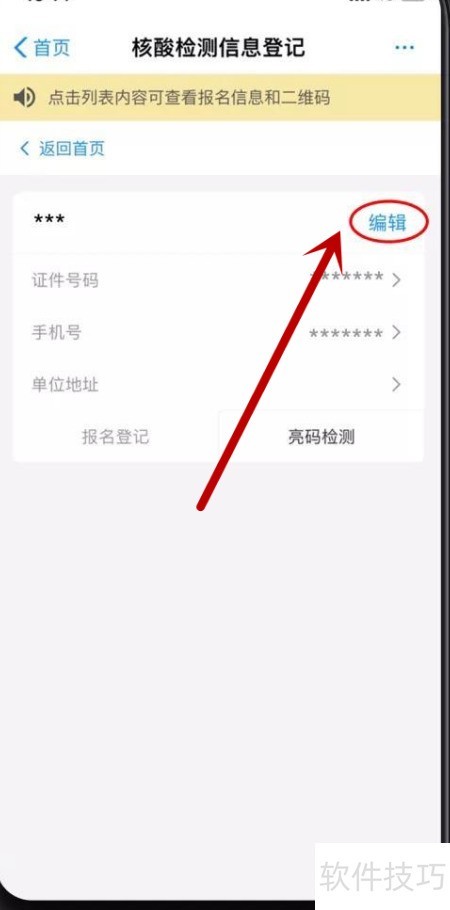 - 进入登记页面,点击右上角编辑即可修改信息。