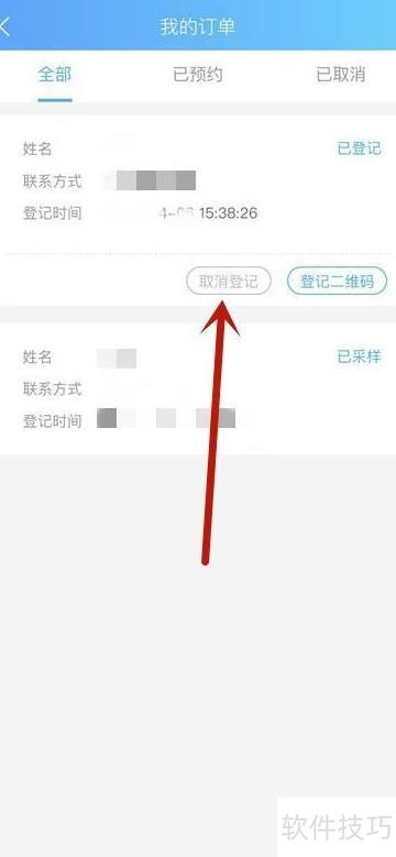- 进入订单页面,选择需修改的订单,点击取消登记后重新进行检测登记操作。
