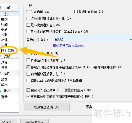 - 进入参数设置界面,选择左侧的一般下的同步歌词功能。