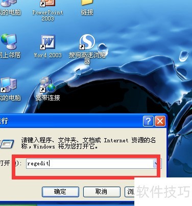 - 按Win+R,输入regedit打开注册表编辑器。