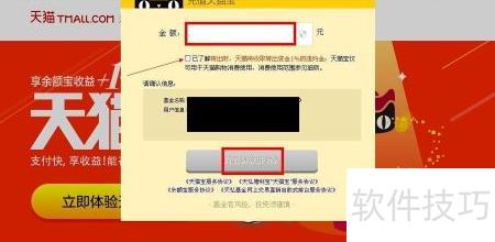 - 进入天猫宝充值页面,填写金额,勾选确认框,同意协议后即可完成充值操作。