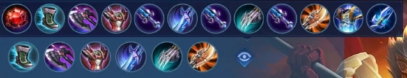 - 出装顺序:肉刀、疾跑鞋、暗影战斧、暴烈之甲、苍穹、饮魔刀