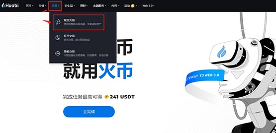 4、登录进入首页,点击【交易】-【现货交易】,进入交易页面。