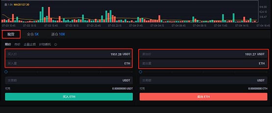 6、选择【现货】,点击买入,即可以实时买入,想要卖出,输入数量,点击卖出即可。