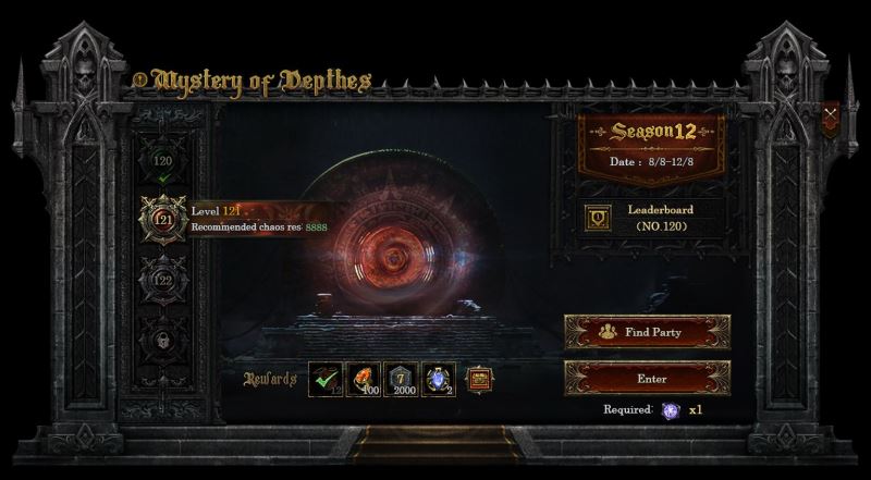 完成主线任务后,Seraph试炼地下城也会解锁。这个地下城是宝石和护身符的主要掉落地点,玩法与混沌之谜相似,主要区别在于非Boss怪物不掉落物品,只掉落经验奖励。Seraph试炼可以由一组玩家共同挑战,难度会根据参与人数增加。