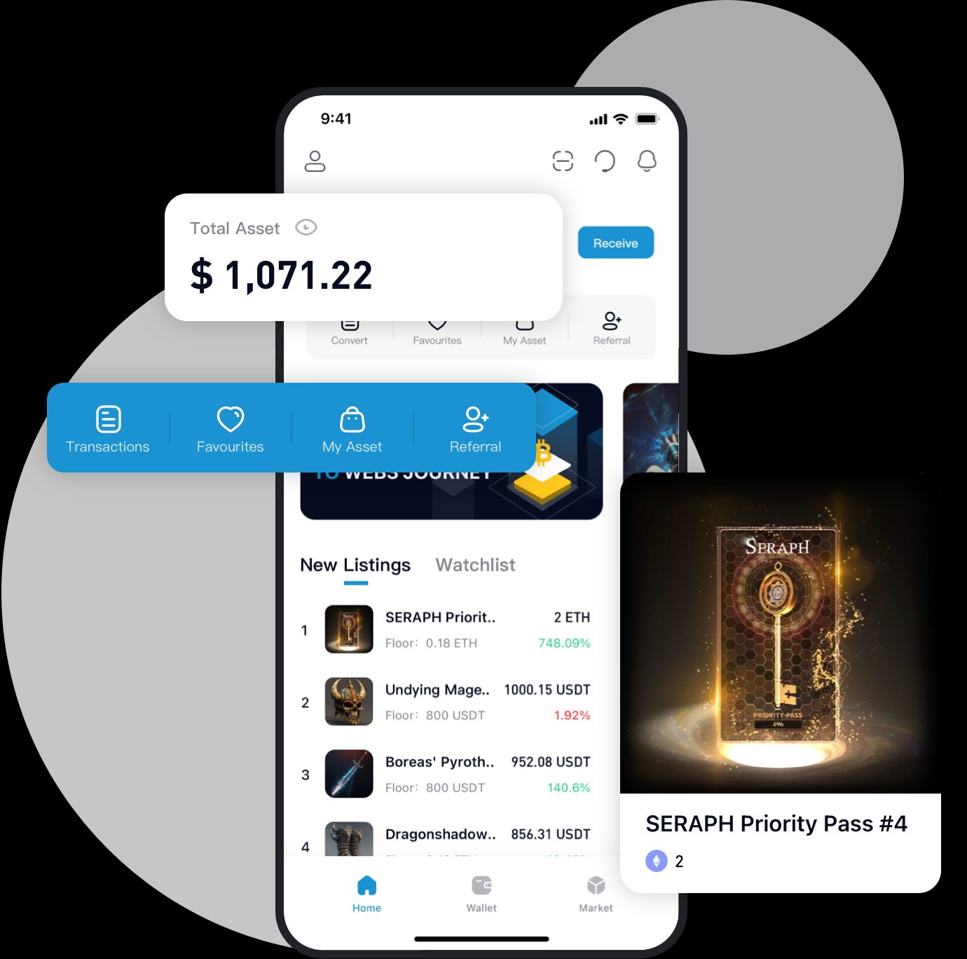 Seraph在BNB链上始终是用户和交易数量最多的游戏,项目也设有自己的市场,用户可以在其中购买和出售游戏装备。SERAPH是该项目的代币,虽然尚未举行代币生成事件(TGE),但持有Seraph星际之旅收藏的玩家将能够用羽毛兑换SERAPH代币。
