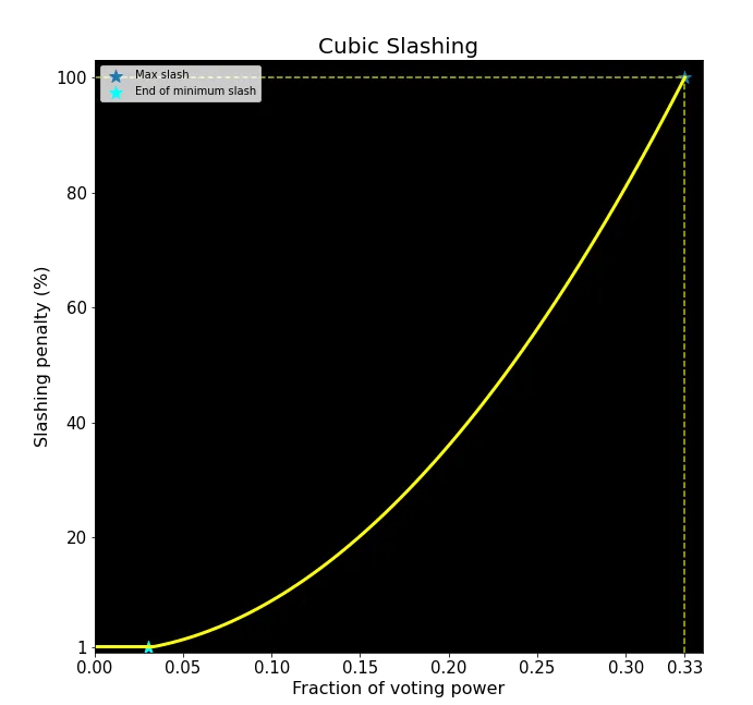 在 Namada 的立方权益证明(Cubic Proof-of-Stake)中,质押削减率与投票权占比相关